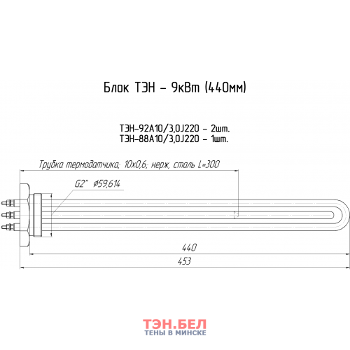 Блок ТЭН - 9 квт.(440мм)
