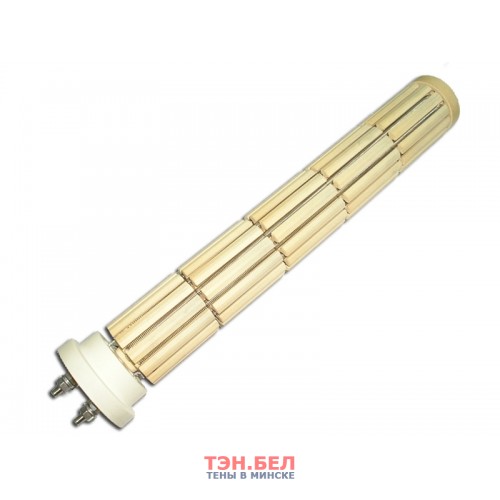 Керамические секционные нагреватели (сухие тэны) под заказ представляют собой нагреватель, в котором резистивная проволока помещена в керамические изоляторы цилиндрической формы. Изоляторы крепятся последовательно, что позволяет изготовить нагреватель необходимой длины. При использовании сухого тэна, его необходимо поместить в металлическую оболочку. Выбор материала оболочки зависит от рода нагреваемой жидкости. При необходимости сухие тэны, возможно, изготовить с «холодной зоной» (длину холодной зоны определяет заказчик). Нагрев происходит посредством конвекции воздуха и/или излучением. Сухие тэны могут использоваться как для нагрева жидкостей, так и для нагрева газов. Температура резистивной проволоки может достигать 800°С. Максимальная удельная мощность нагревателя 9 Вт/см2.