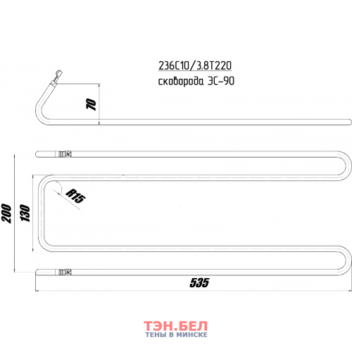 ТЭН для нагрева воздуха мощность 4000 Вт предназначен в качестве встраиваемых комплектующих изделий в сковороды электрические. Данный нагревательный элемент используется в сковородах ЭС-90