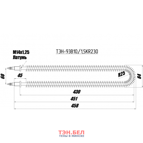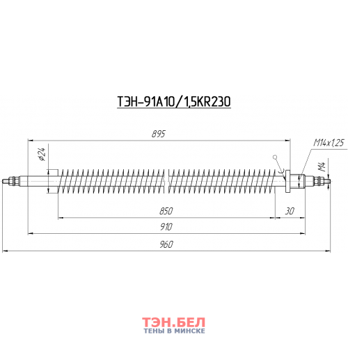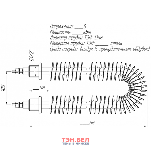ТЭН оребренный со штуцером от 0,5 до 6,0 кВт под заказ