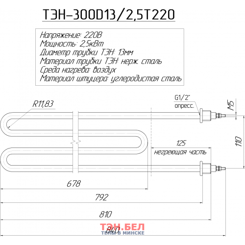 Диаметр трубки ТЭН, мм — (согласно ГОСТ 13268-88): 6,5; 7,4; 8,0; 8,5; 10; 13; 16.