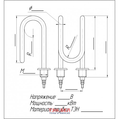 Мощность ТЭН — рассчитывается с учетом рабочих параметров ТЭНа, в зависимости от развернутой длины, диаметра трубки, материала трубки, рабочей среды.